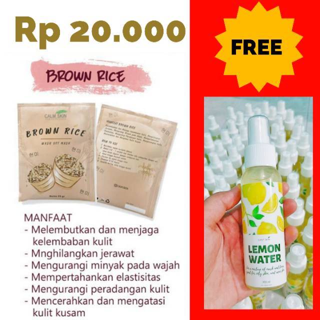 Free Lemon Water Masker Wajah Calm Skin Brown Rice Mask Wash Off